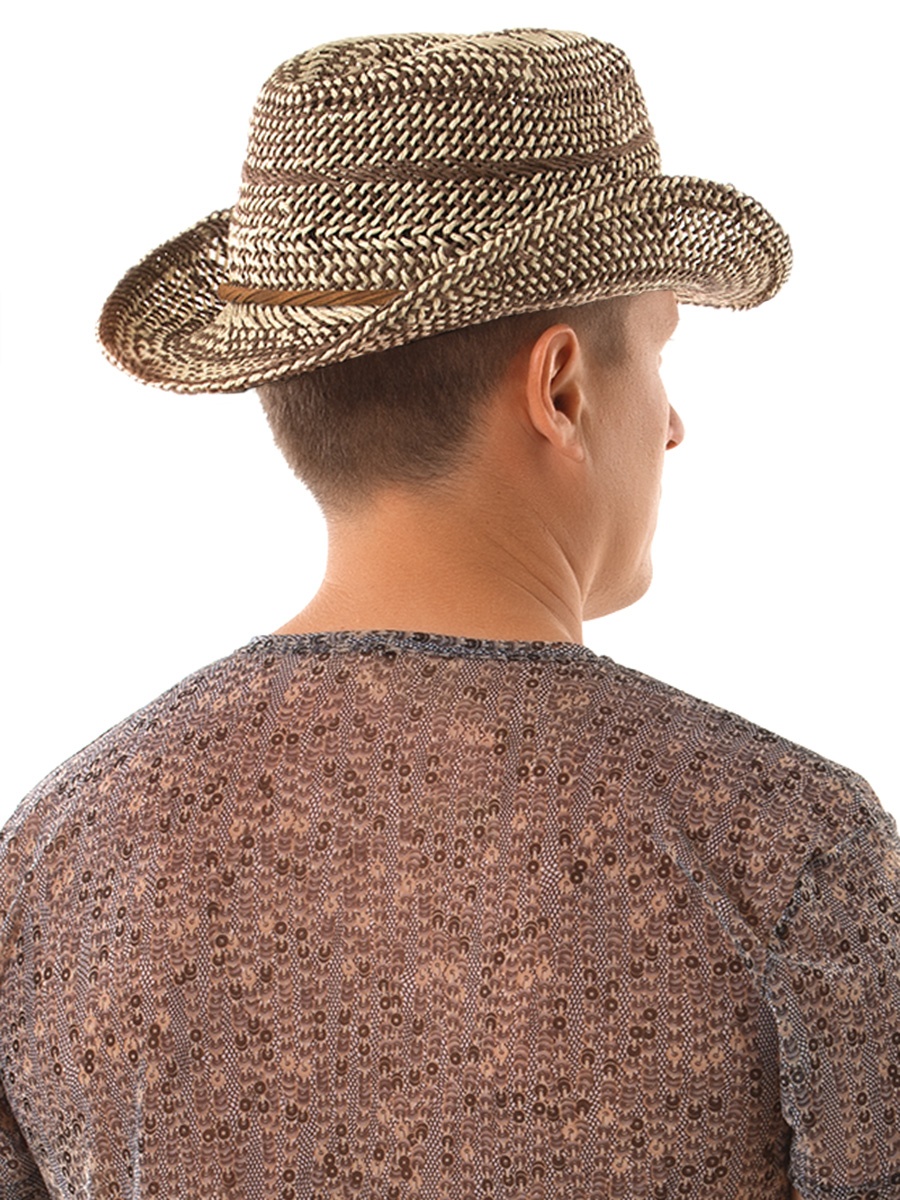 Стильная мужская шляпа из качественного синтетического материала, с контрастным плетением и узкими гибкими полями. Прекрасно защищает от солнца и обеспечивает циркуляцию воздуха. Лаконичный декор в виде крученых тонких ремешков вокруг тульи придает изделию законченный вид.