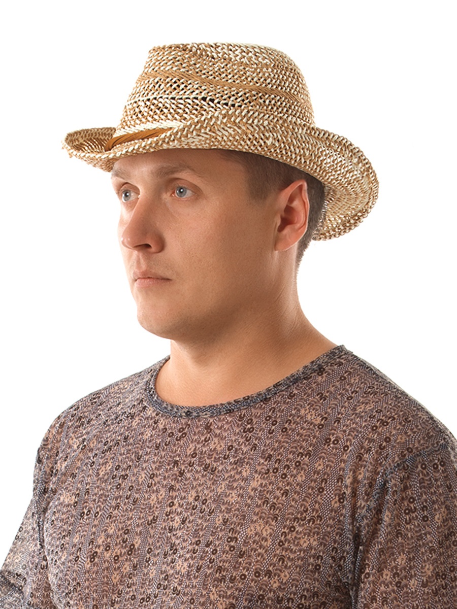 Стильная мужская шляпа из качественного синтетического материала, с контрастным плетением и узкими гибкими полями. Прекрасно защищает от солнца и обеспечивает циркуляцию воздуха. Лаконичный декор в виде крученых тонких ремешков вокруг тульи придает изделию законченный вид.