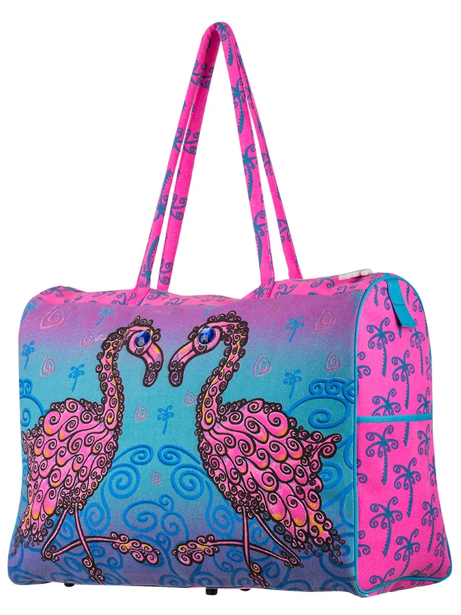Вместительная женская сумка с двумя ручками кручёного типа и молнией, украшенной подвеской-фламинго. Дополнительные плюсы модели - практичные пластиковые <<ножки>>, открытые боковые карманы и внутренний карман, закрывающийся на молнию.